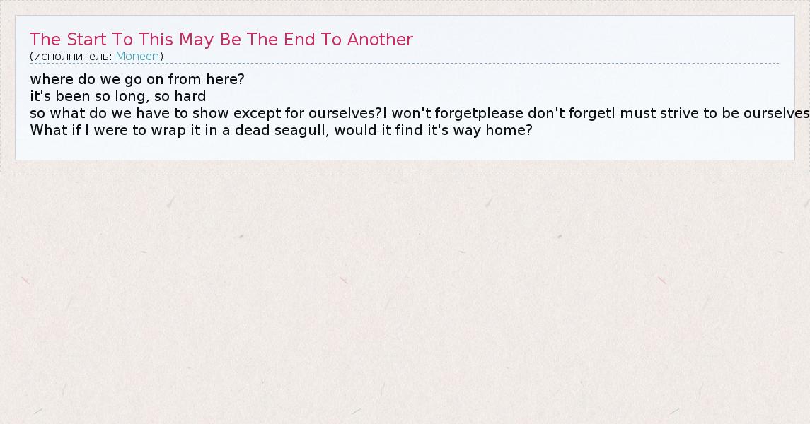 А как ты думаешь, о чем песня "The Start To This May Be The End To Another" ?