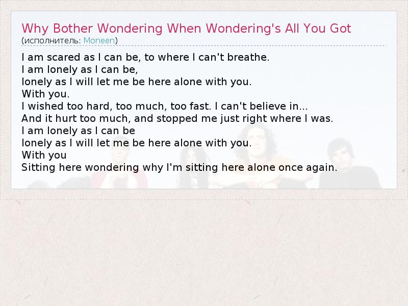 А как ты думаешь, о чем песня "Why Bother Wondering When Wondering's All You Got" ?