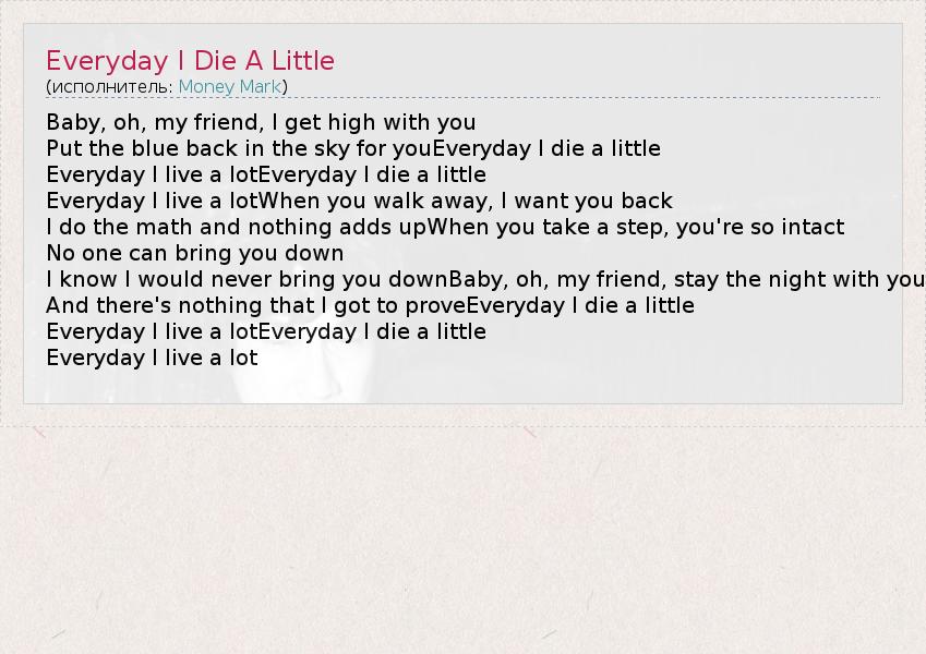 А как ты думаешь, о чем песня "Everyday I Die A Little" ?