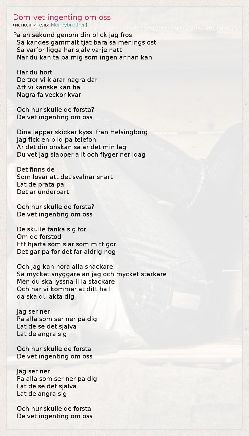 ГлавнаяИсполнителиMoneybrotherDom vet ingenting om oss