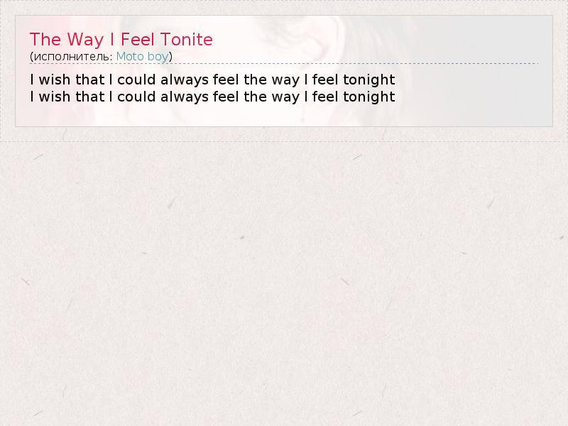 А как ты думаешь, о чем песня "The Way I Feel Tonite" ?