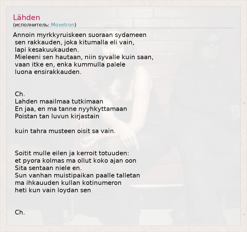 А как ты думаешь, о чем песня "Lähden" ?