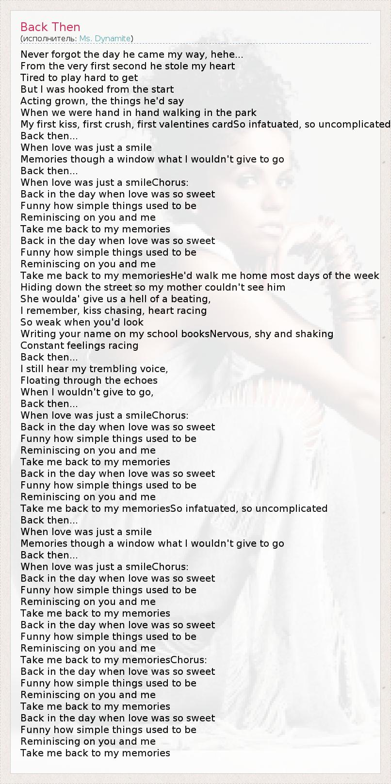 Take me back to my memoriesSo infatuated, so uncomplicated