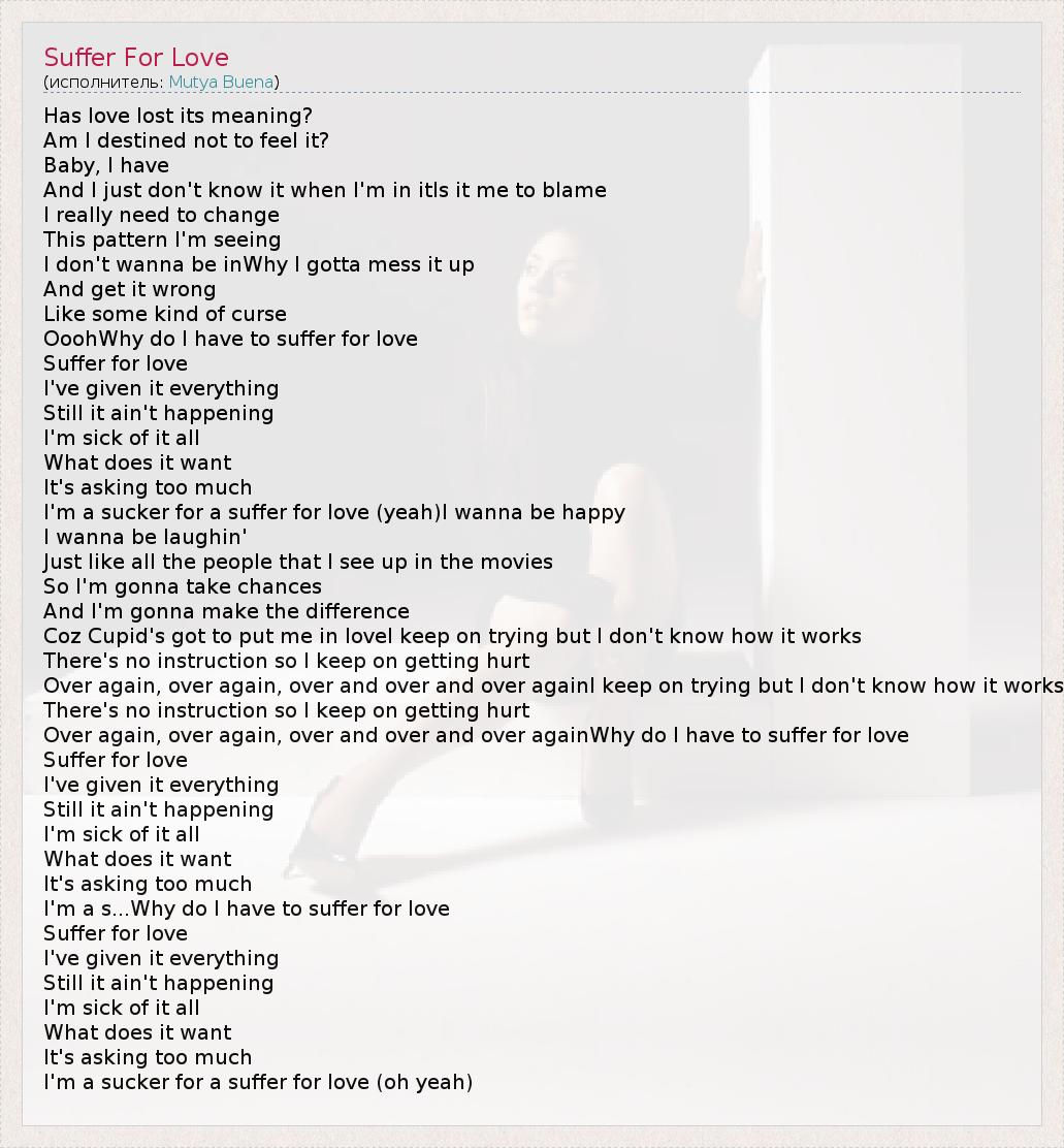 А как ты думаешь, о чем песня "Suffer For Love" ?