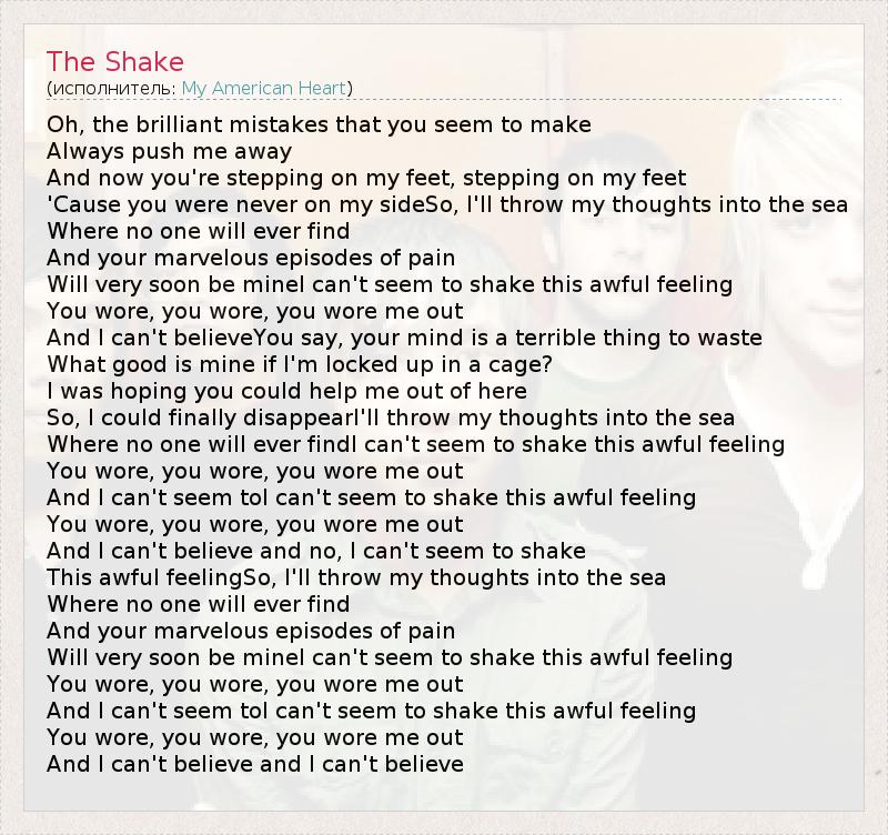 Это интересно:My American Heart - рок-группа из Сан-Диего, Калифорния. Изначально группа имела называние No Way Out. Первый состав: вокалист - Лэрри Солимана, бас - Джесси Баррера, гитара - Клинте Дельгадо и Джереми Мендезе, и ударные - Стивен Оире. No Way Out стали довольно извсетными у себя дома принимая участие во многих местных SoCal встречах. Из-за неприятностей с законом относительно названия группа была вынуждена... продолжение