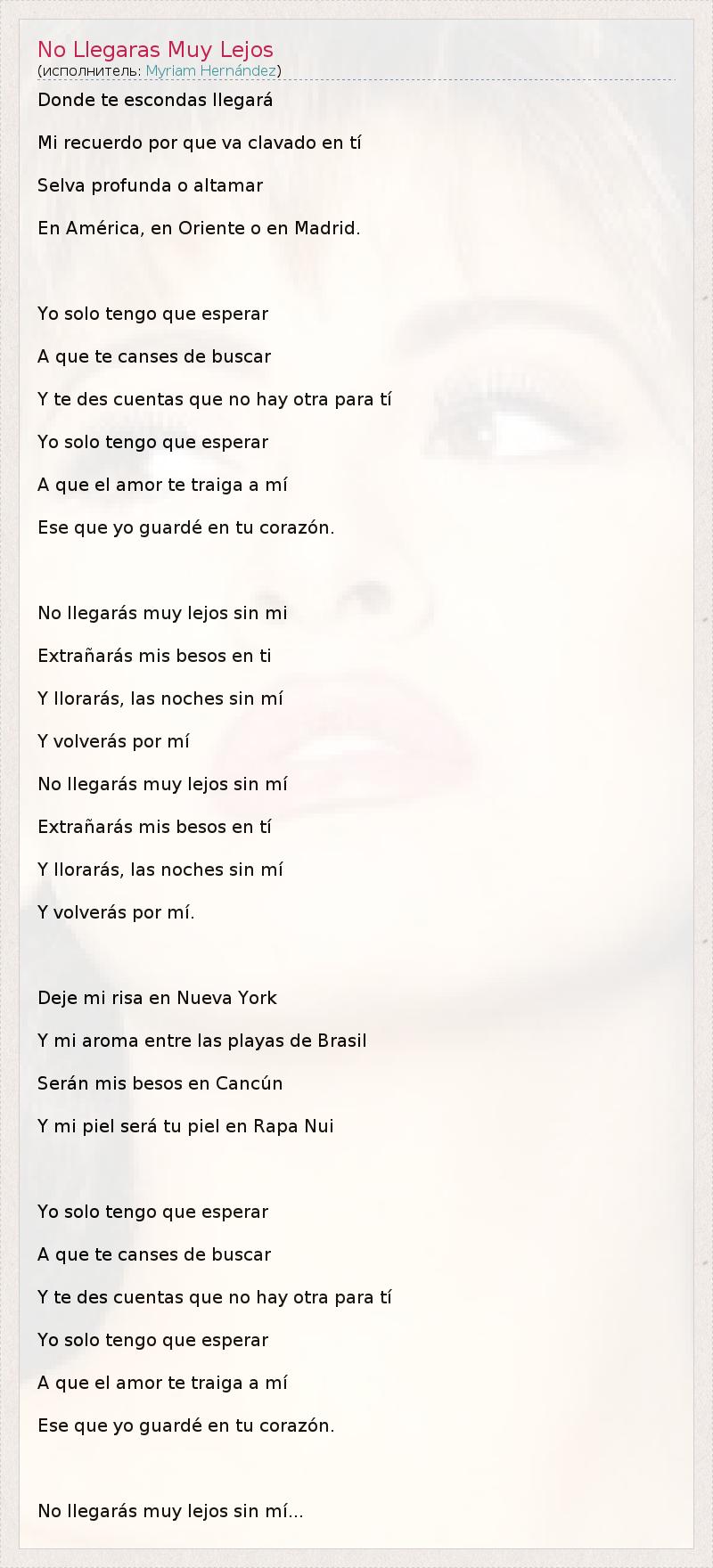 А как ты думаешь, о чем песня "No Llegaras Muy Lejos" ?