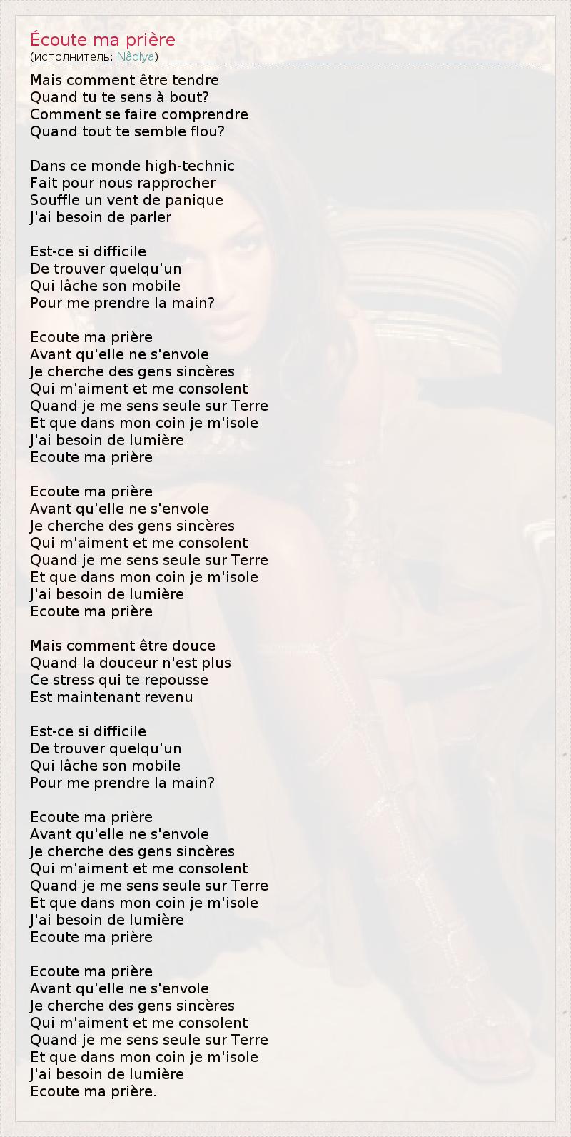 А как ты думаешь, о чем песня "Écoute ma prière" ?