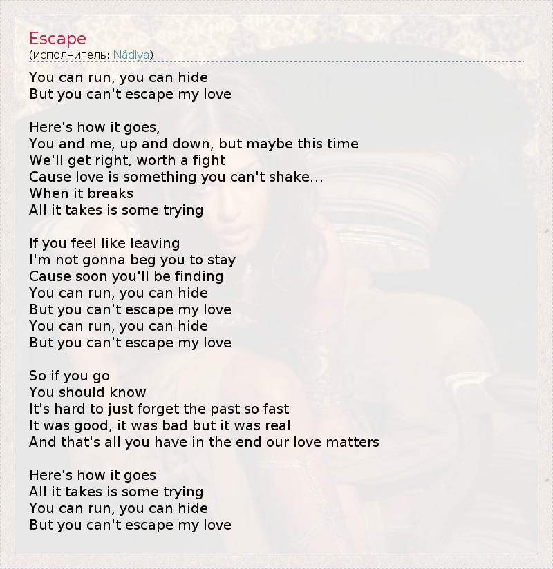 А как ты думаешь, о чем песня "Escape" ?