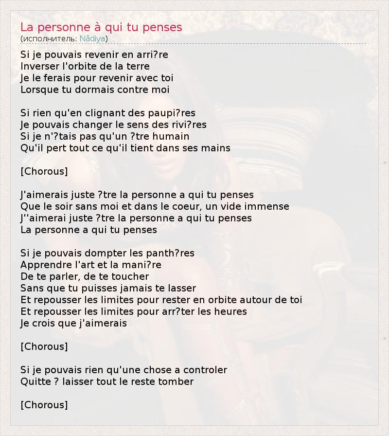 А как ты думаешь, о чем песня "La personne à qui tu penses" ?