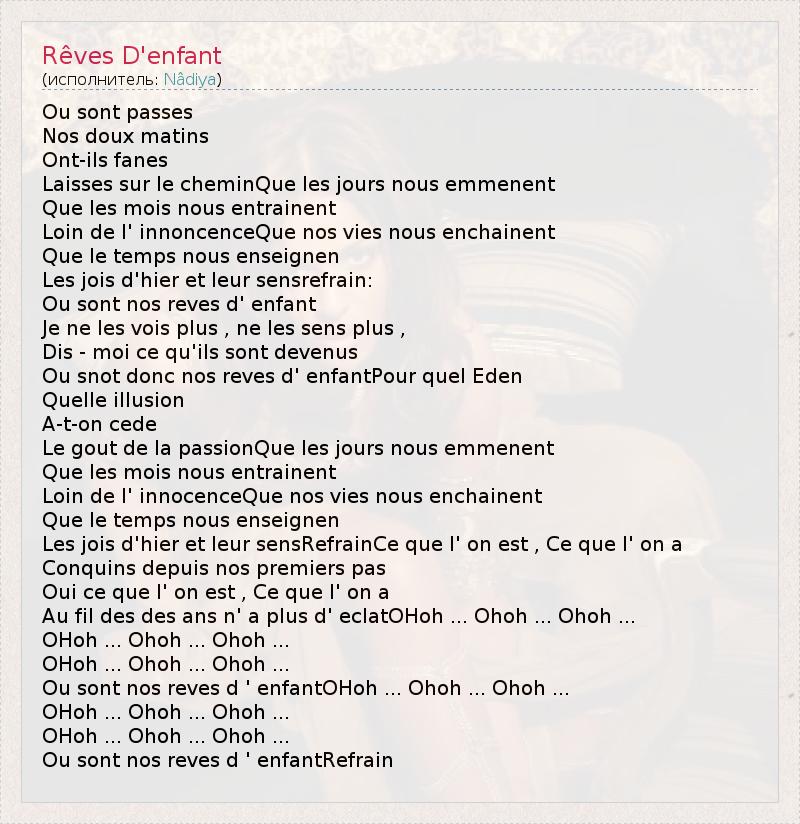 А как ты думаешь, о чем песня "Rêves D'enfant" ?