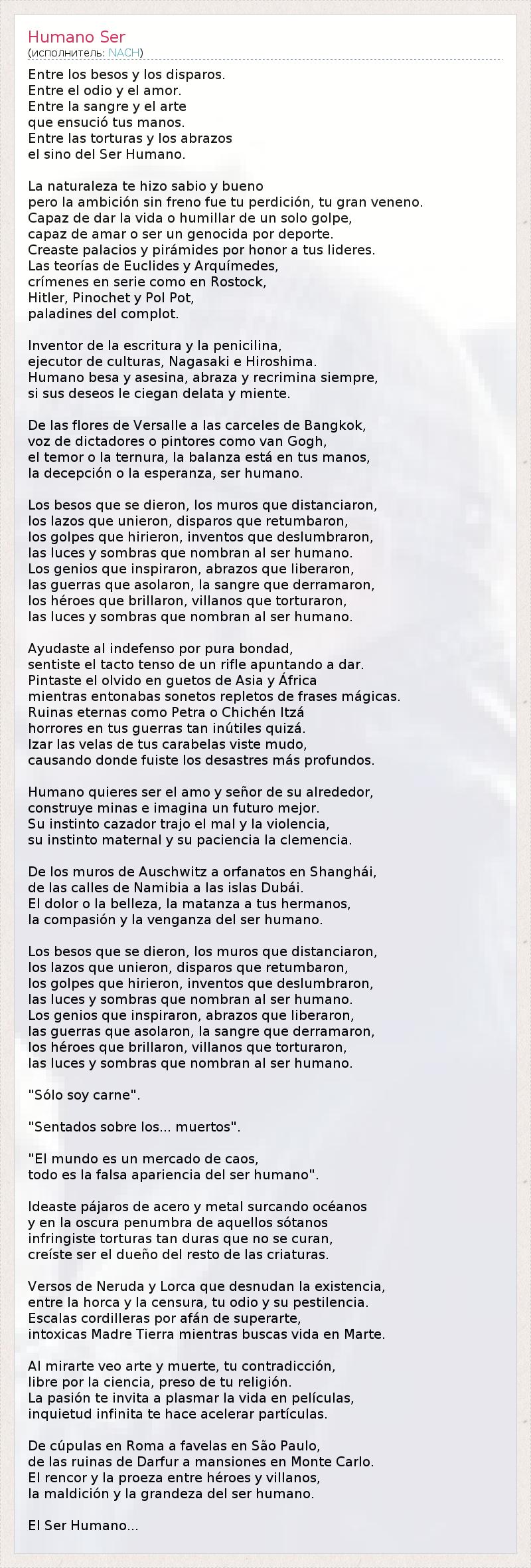 А как ты думаешь, о чем песня "Humano Ser" ?