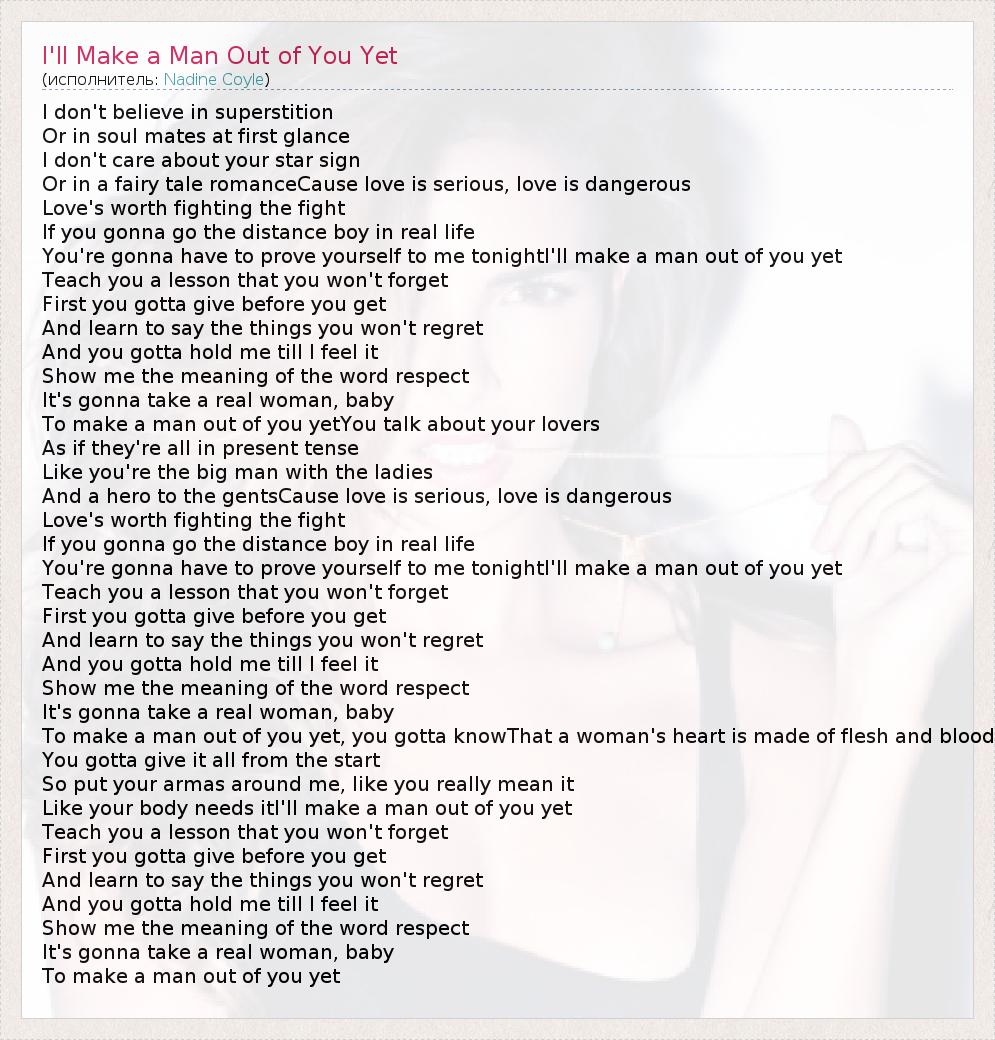 ГлавнаяИсполнителиNadine CoyleI'll Make a Man Out of You Yet