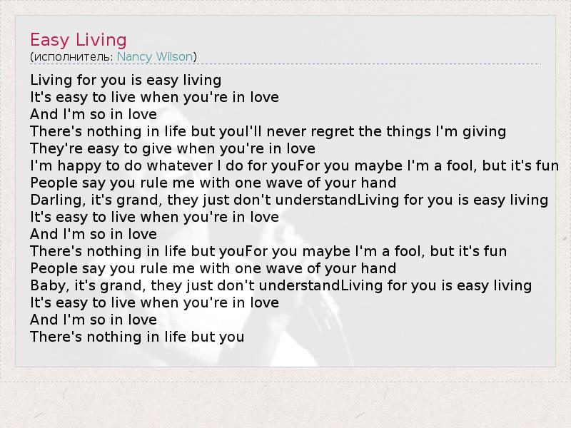 Living for you is easy living