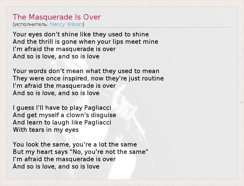 А как ты думаешь, о чем песня "The Masquerade Is Over" ?