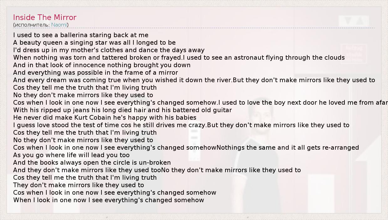 А как ты думаешь, о чем песня "Inside The Mirror" ?