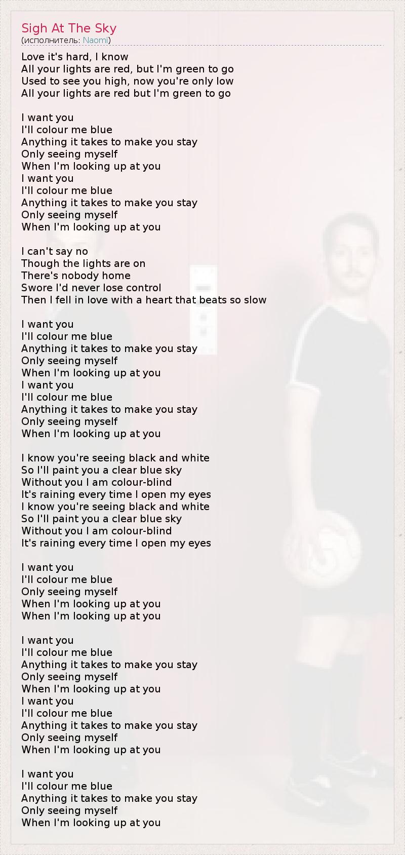 А как ты думаешь, о чем песня "Sigh At The Sky" ?