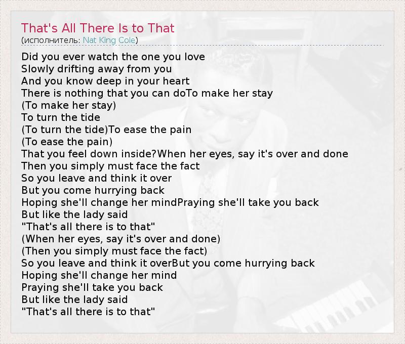 ГлавнаяИсполнителиNat King ColeThat's All There Is to That