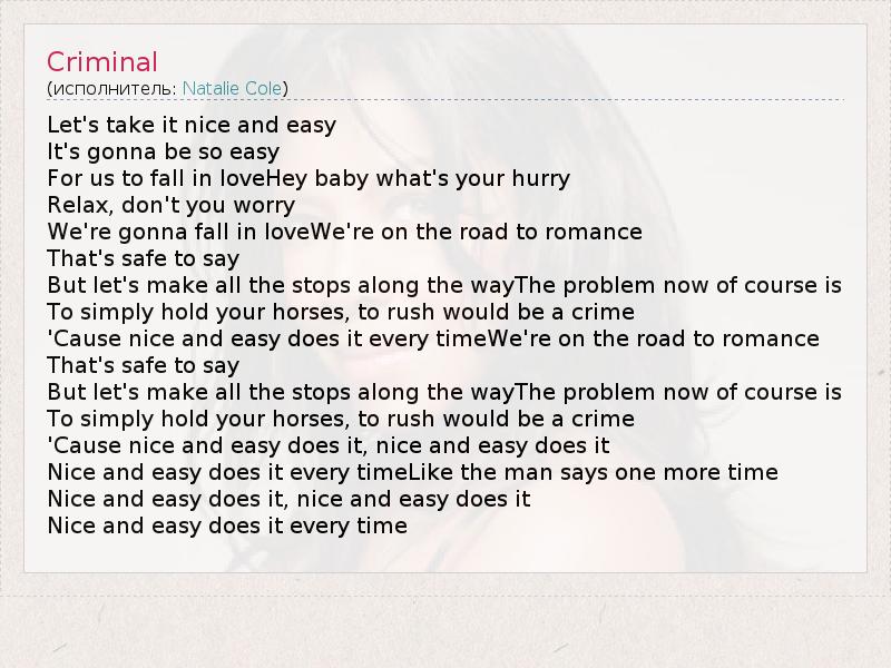 'Cause nice and easy does it, nice and easy does it
