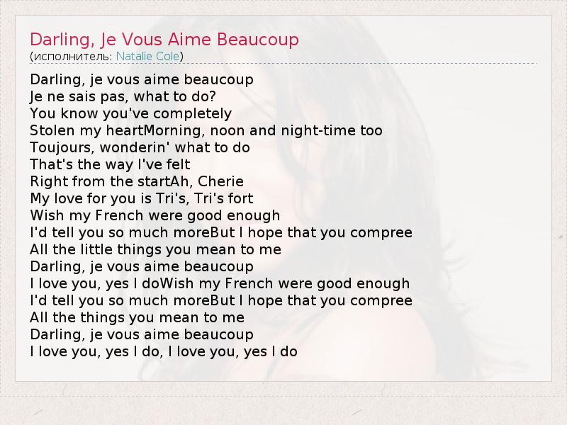 ГлавнаяИсполнителиNatalie ColeDarling, Je Vous Aime Beaucoup