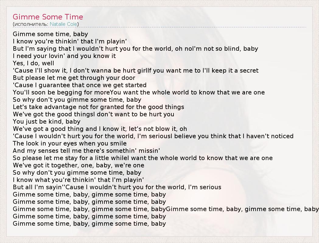 Gimme some time, baby, gimme some time, babyGimme some time, baby, gimme some time, baby