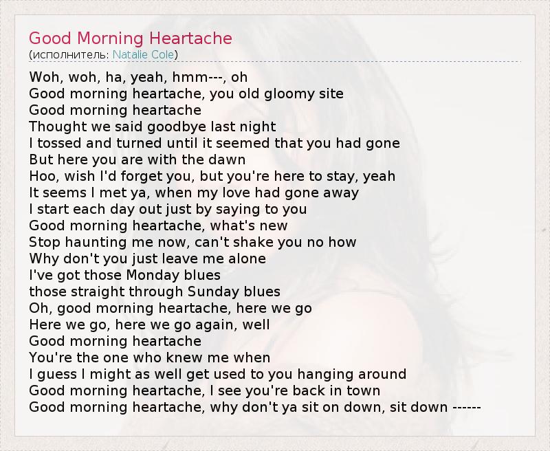 А как ты думаешь, о чем песня "Good Morning Heartache" ?
