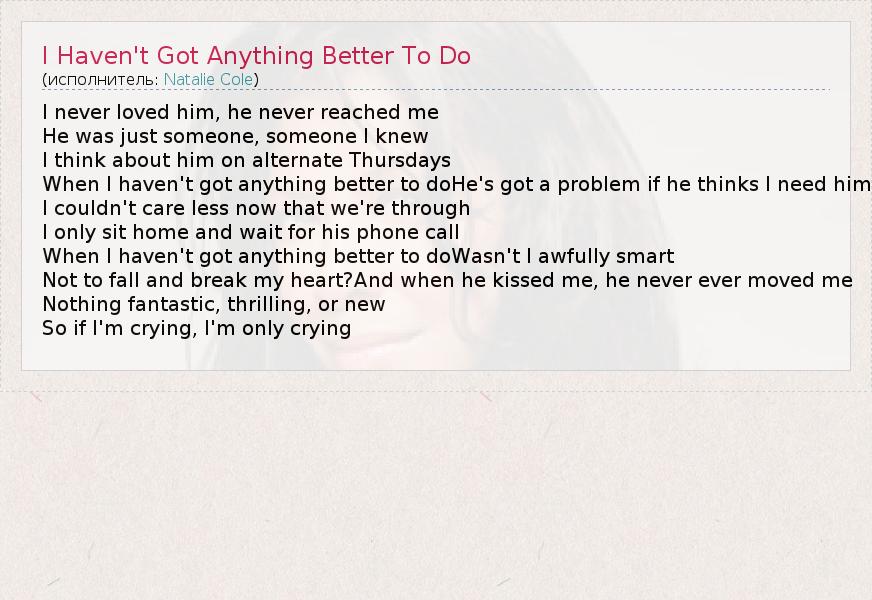 ГлавнаяИсполнителиNatalie ColeI Haven't Got Anything Better To Do