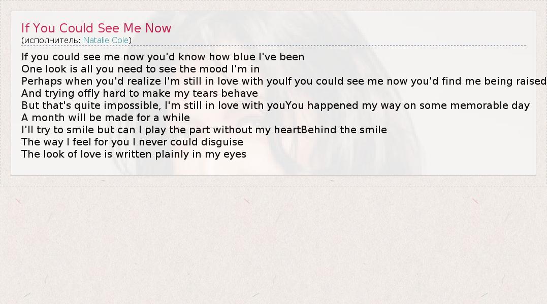 А как ты думаешь, о чем песня "If You Could See Me Now" ?