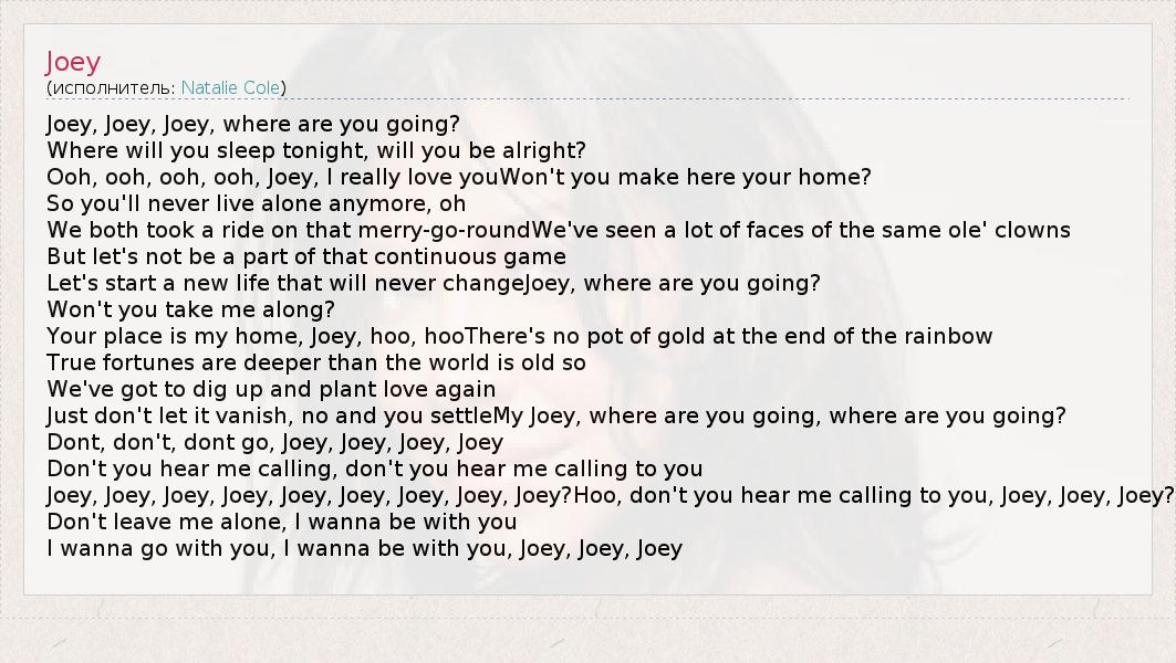 Ooh, ooh, ooh, ooh, Joey, I really love youWon't you make here your home?