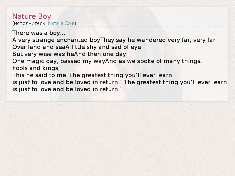 А как ты думаешь, о чем песня "Nature Boy" ?