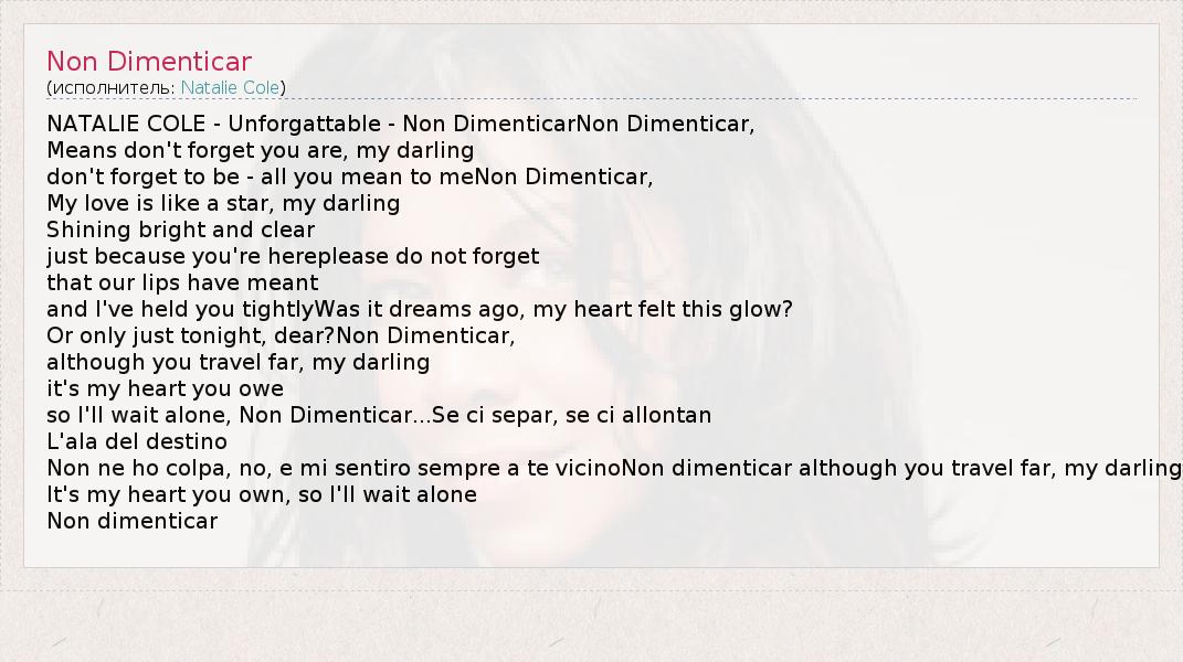 А как ты думаешь, о чем песня "Non Dimenticar" ?
