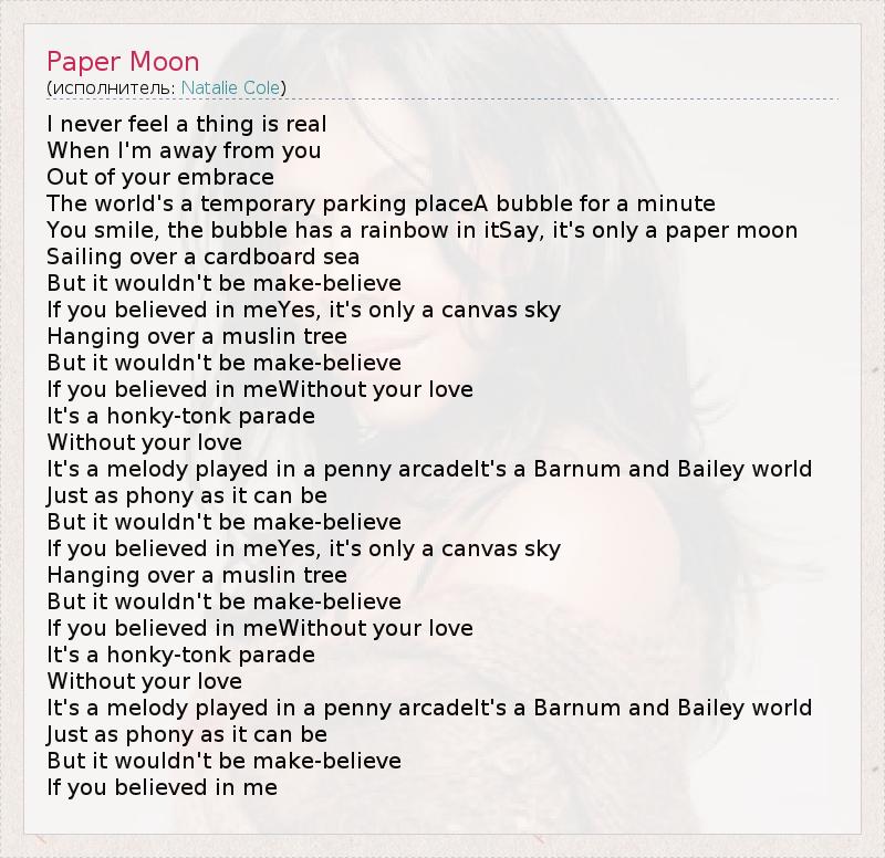 А как ты думаешь, о чем песня "Paper Moon" ?