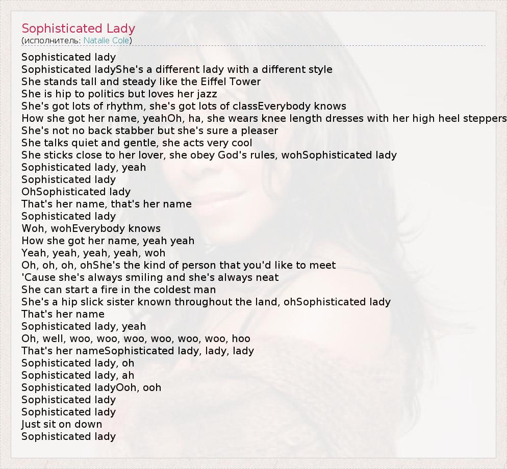 А как ты думаешь, о чем песня "Sophisticated Lady" ?