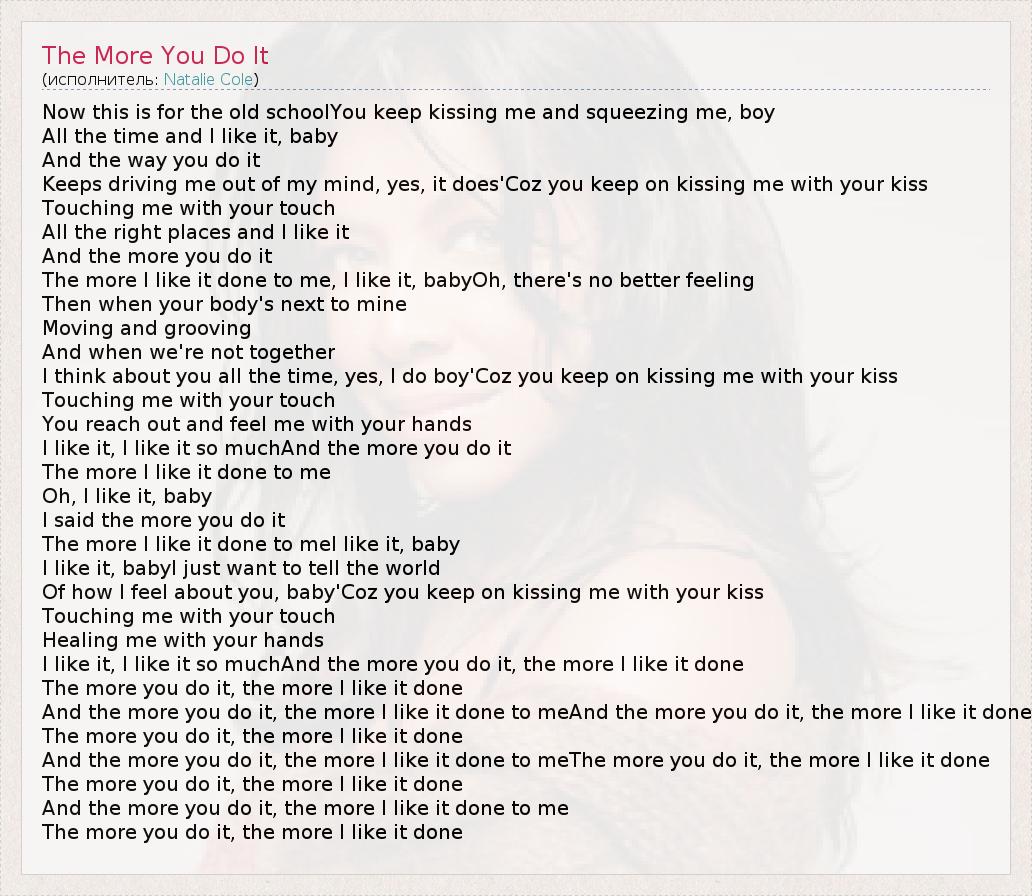 And the more you do it, the more I like it done to meAnd the more you do it, the more I like it done