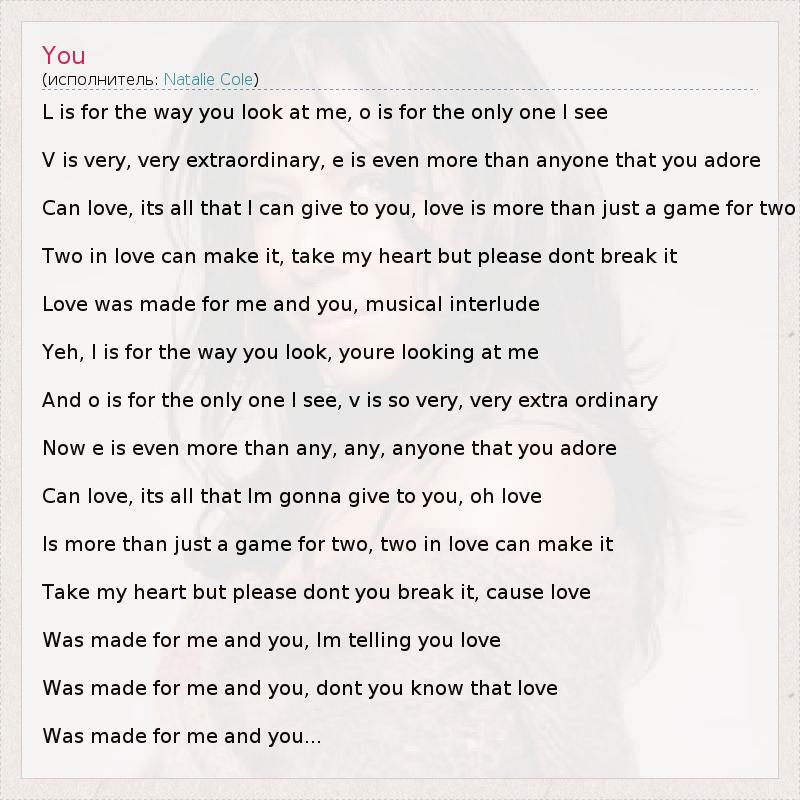 Это интересно:Несмотря на то, что Натали Коул является дочерью знаменитого певца Nat ''King'' Cole, она начала заниматься пением, только после поступления в Университет Штата Массачусетс.Натали начинала свою музыкальную карьеру, с того что писала песни, помимо этого таланта, она была великолепной пианисткой, пела вместе с Chuck Jackson и Marvin Yancy. Их музыка была смесью из различных музыкальных... продолжение