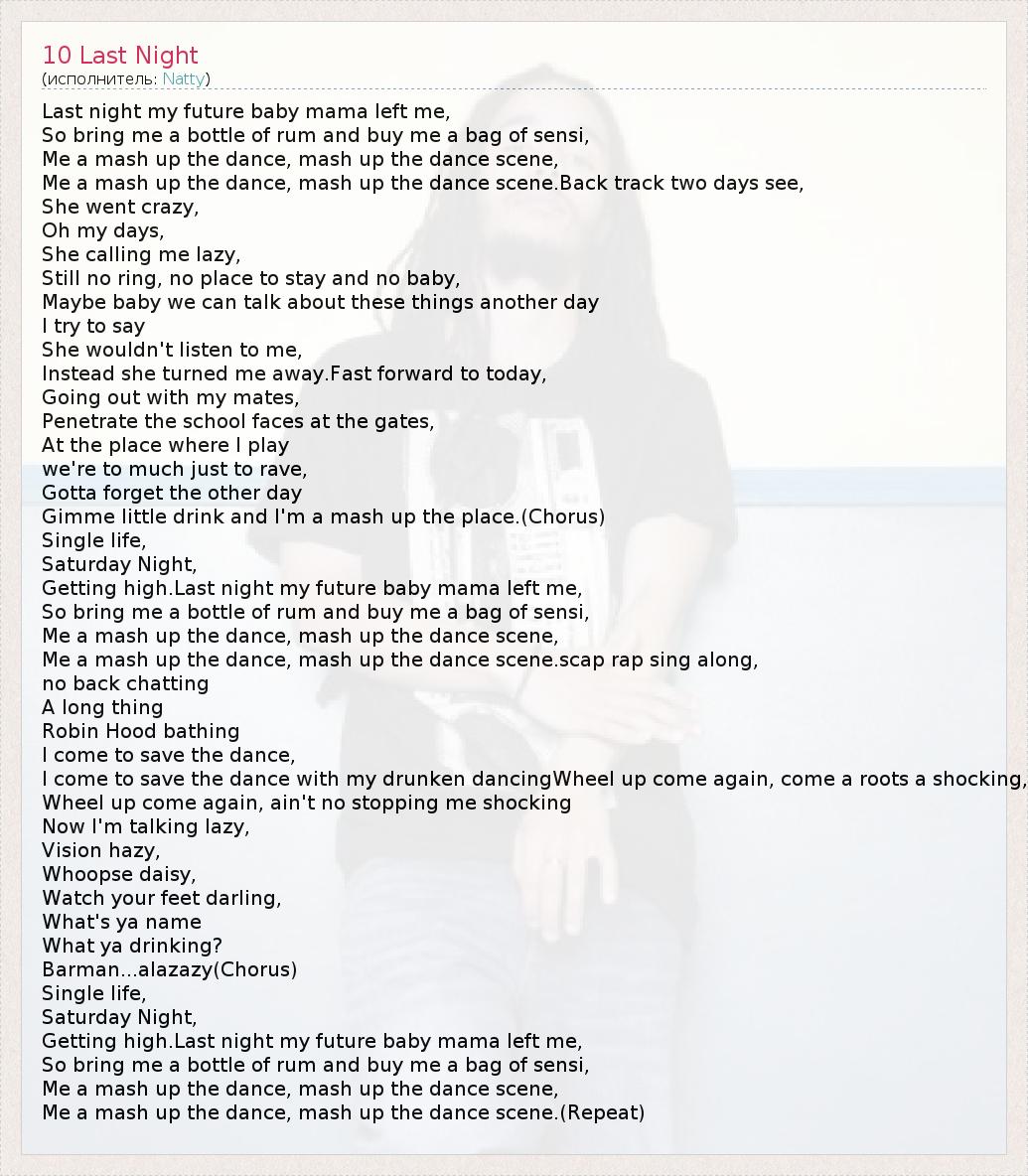 А как ты думаешь, о чем песня "10 Last Night" ?