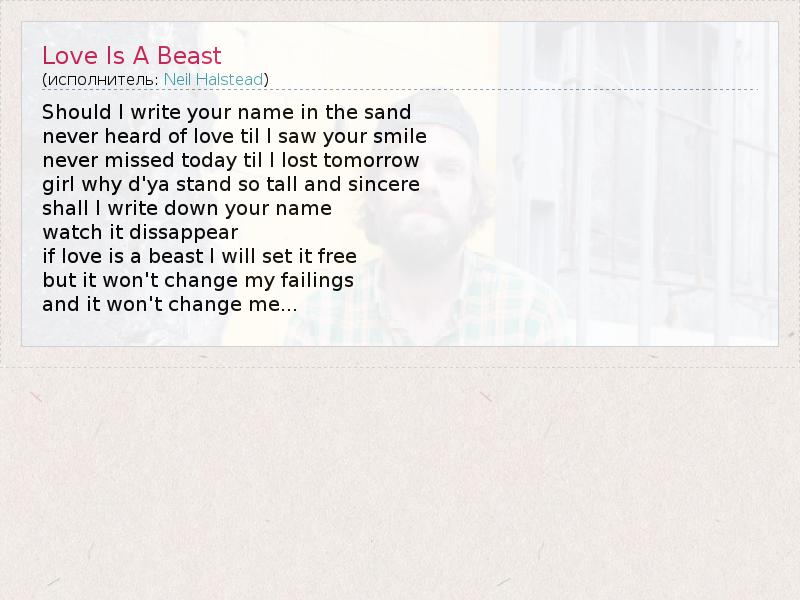 А как ты думаешь, о чем песня "Love Is A Beast" ?