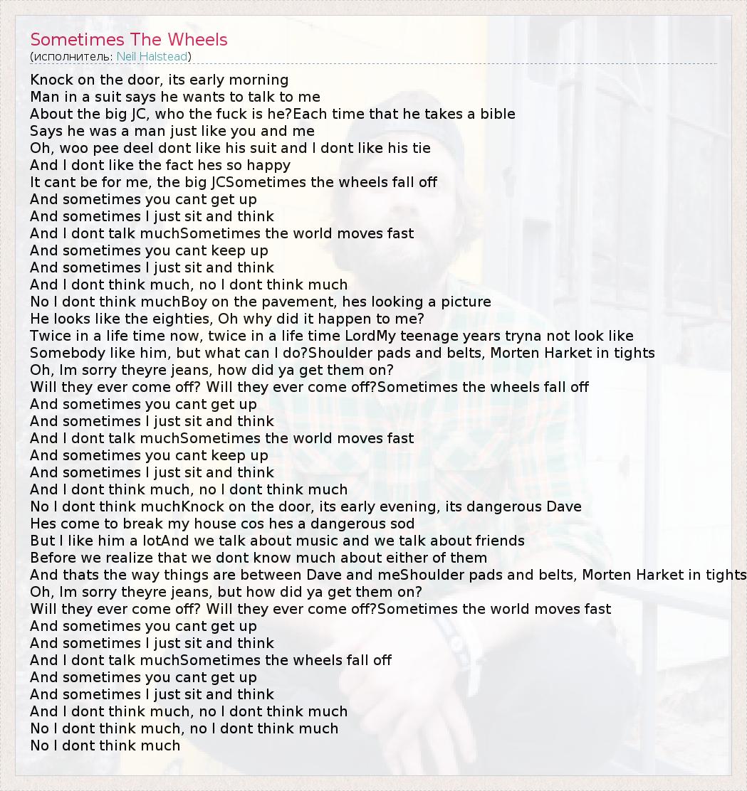 А как ты думаешь, о чем песня "Sometimes The Wheels" ?