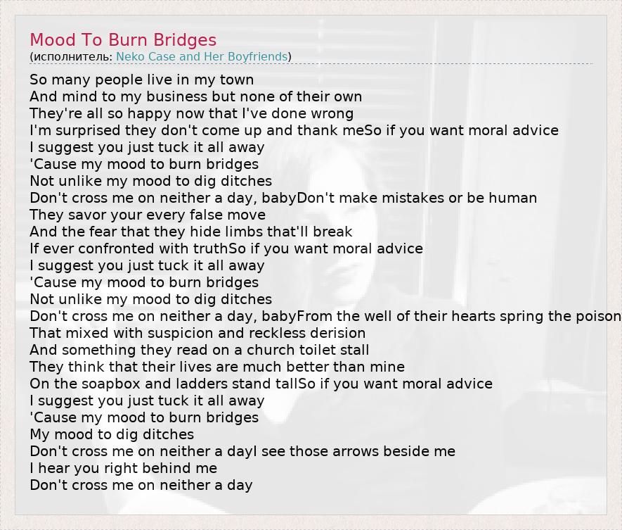 А как ты думаешь, о чем песня "Mood To Burn Bridges" ?