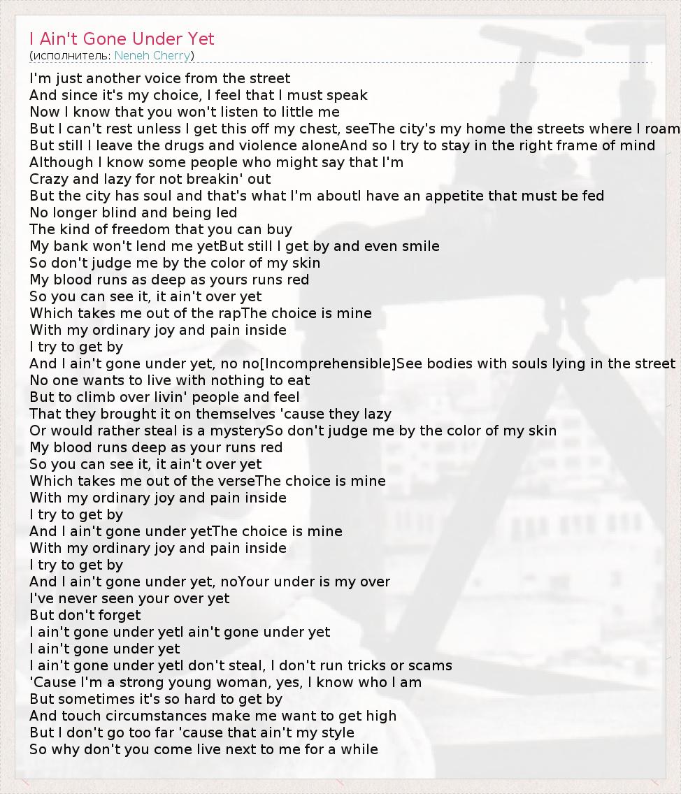 А как ты думаешь, о чем песня "I Ain't Gone Under Yet" ?