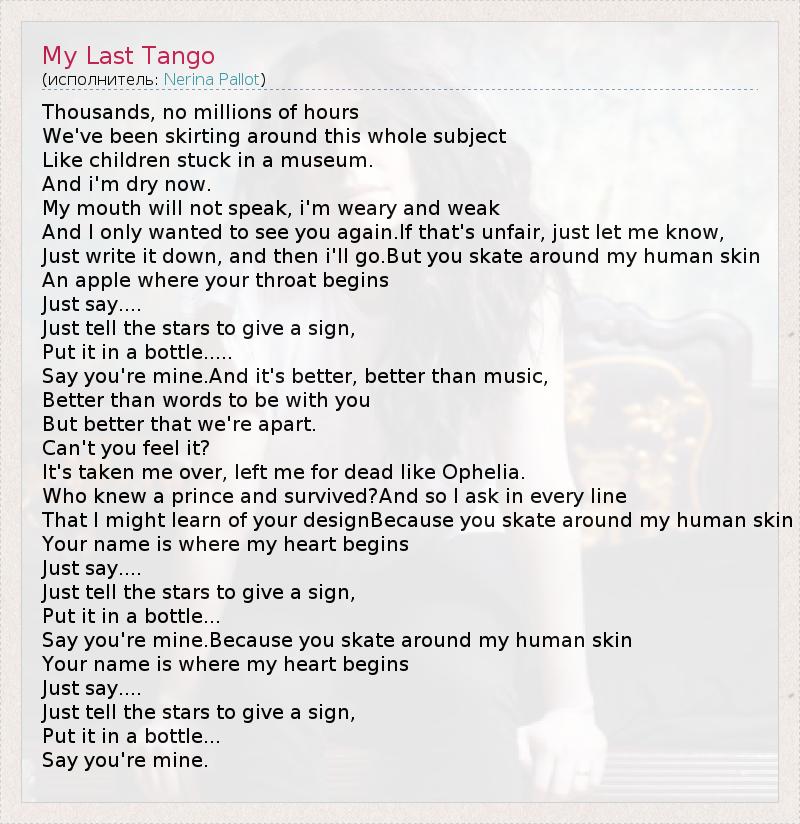 А как ты думаешь, о чем песня "My Last Tango" ?