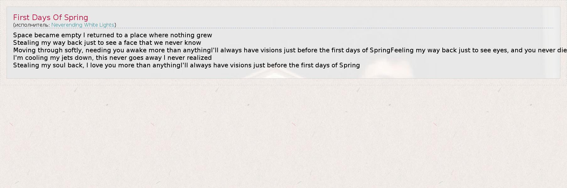 А как ты думаешь, о чем песня "First Days Of Spring" ?
