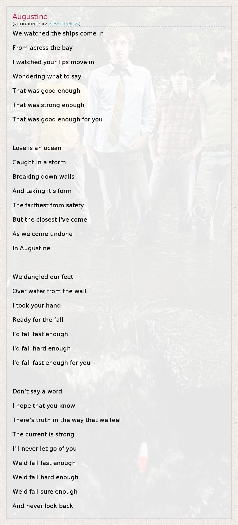 А как ты думаешь, о чем песня "Augustine" ?