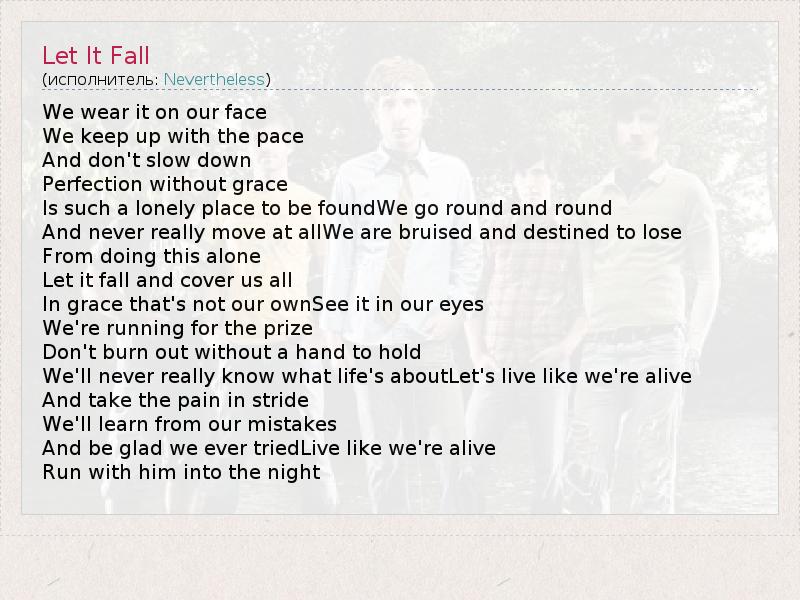 А как ты думаешь, о чем песня "Let It Fall" ?