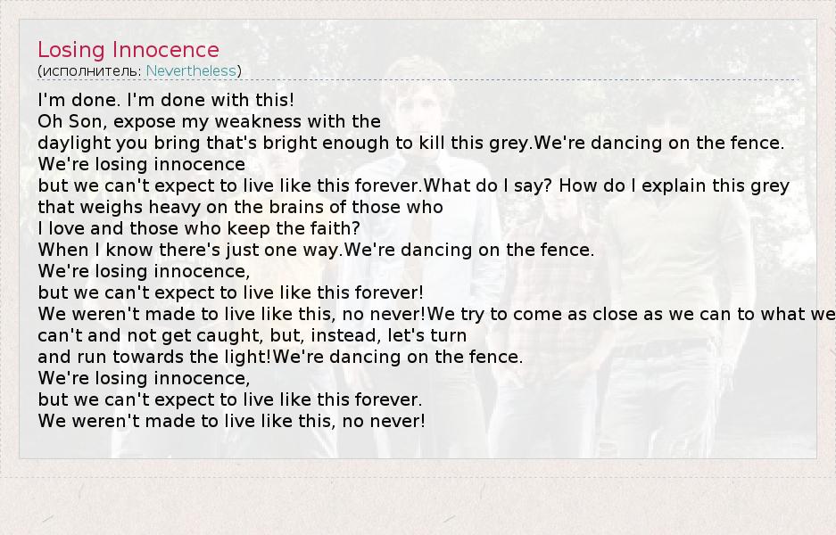 А как ты думаешь, о чем песня "Losing Innocence" ?