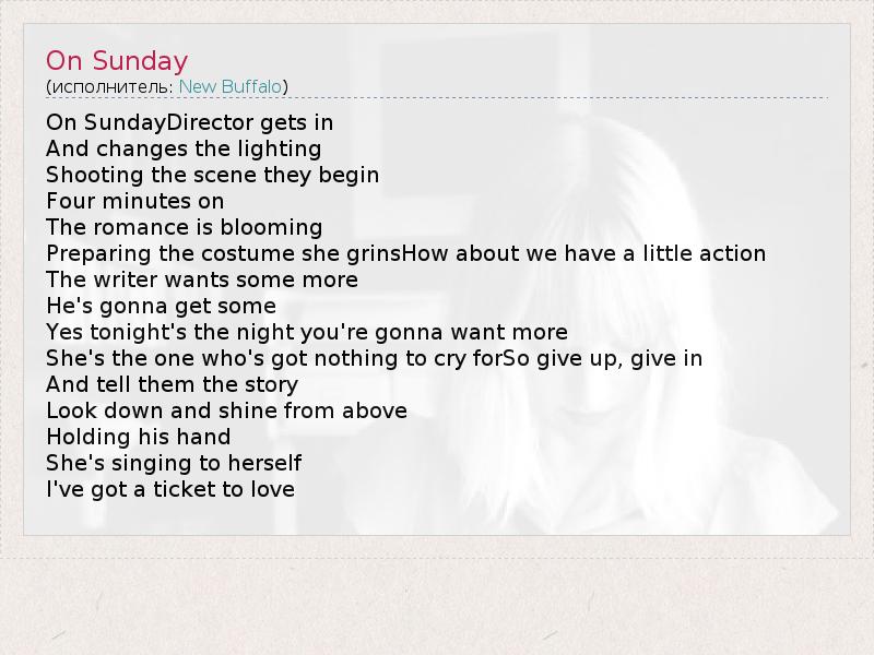 А как ты думаешь, о чем песня "On Sunday" ?