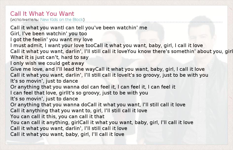 I must admit, I want your love tooCall it what you want, baby, girl, I call it love