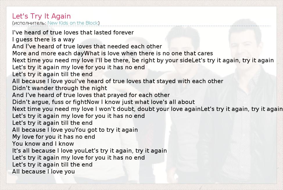 А как ты думаешь, о чем песня "Let's Try It Again" ?