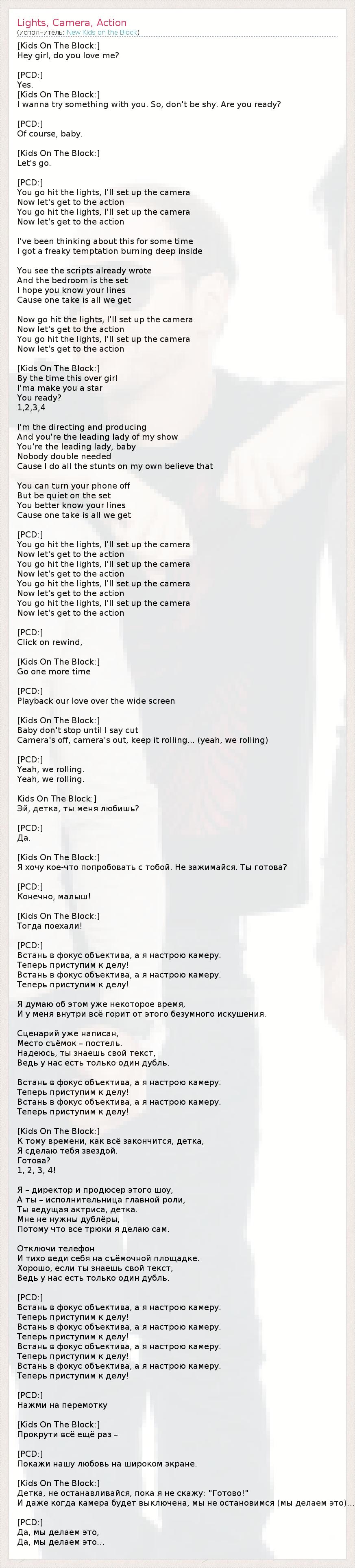 А как ты думаешь, о чем песня "Lights, Camera, Action" ?