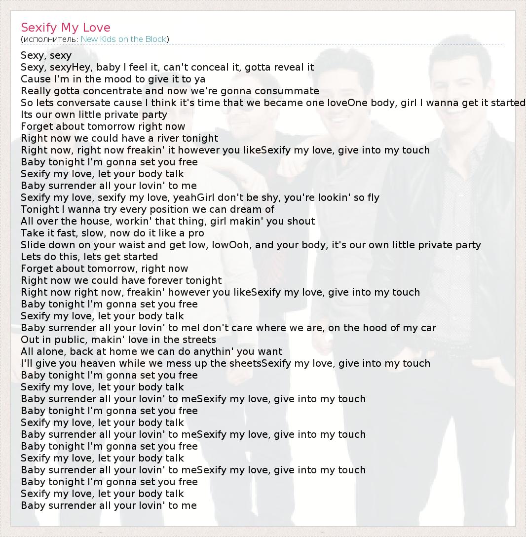 Right now right now, freakin' however you likeSexify my love, give into my touch