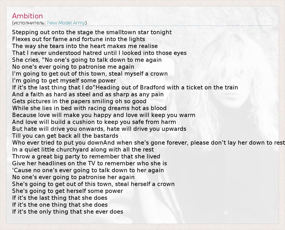 А как ты думаешь, о чем песня "Ambition" ?